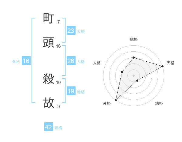 町頭 殺故さんを姓名の画数から五運を鑑定