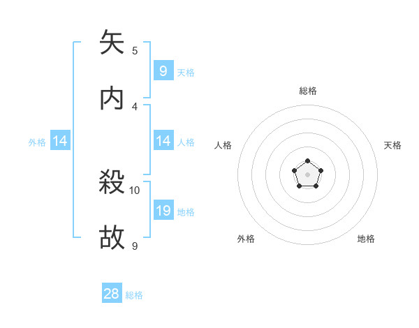 矢内 殺故さんの総格は28画の1点!