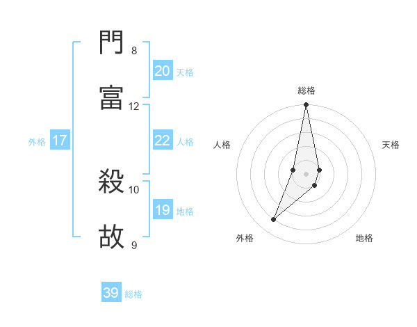 門富 殺故さんの外格は17画の4点!
