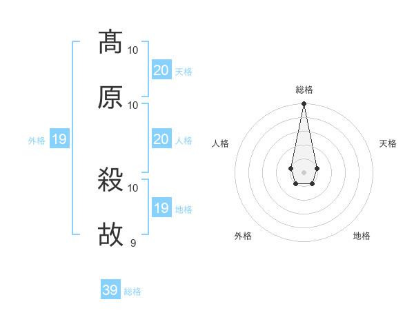 髙原 殺故さんの総格は39画の5点!