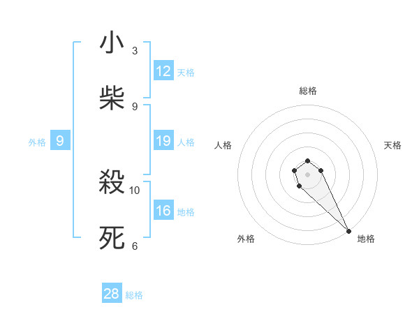 小柴 殺死さんの総格は28画の1点!
