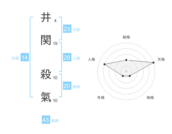 井関 殺氣さんの天格は23画の5点!