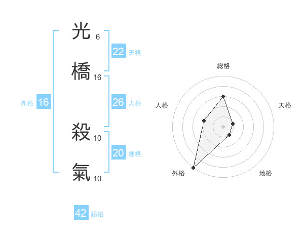 光橋 殺氣さんを姓名の画数から五運を鑑定