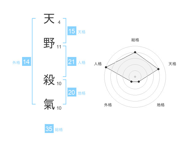 天野 殺氣さんを姓名の画数から五運を鑑定