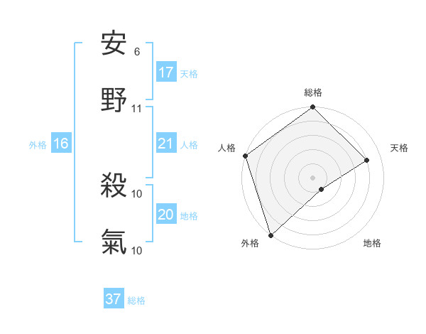 安野 殺氣さんを姓名の画数から五運を鑑定