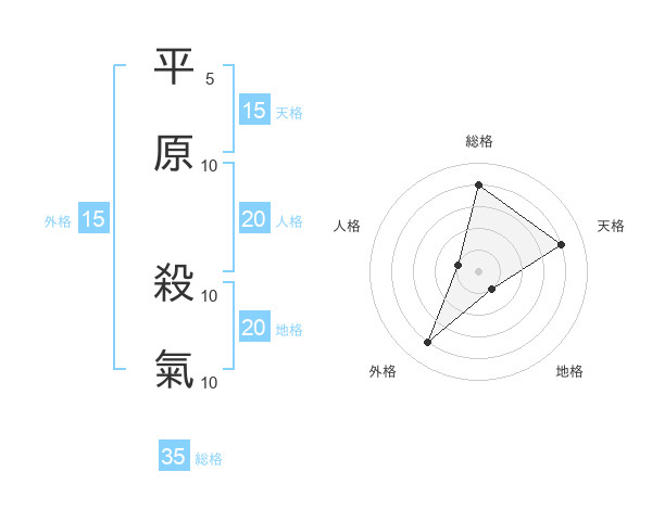 平原 殺氣さんの地格は20画の1点!