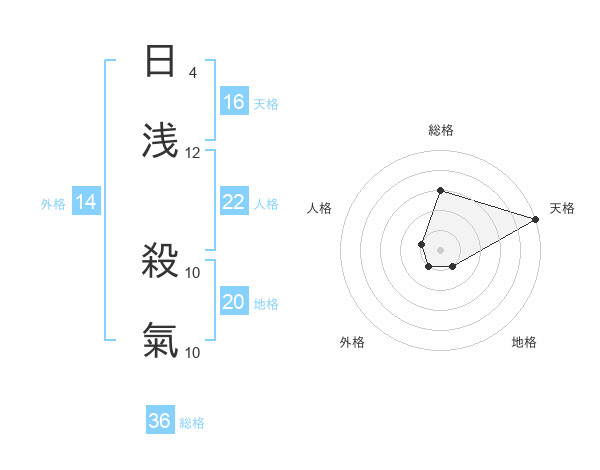 日浅 殺氣さんを姓名の画数から五運を鑑定
