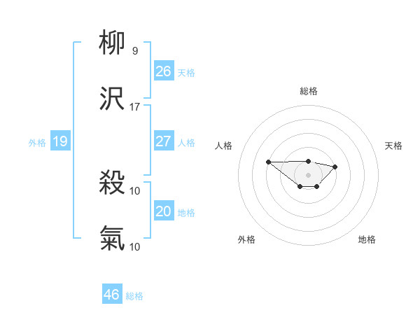 柳沢 殺氣さんの天格は26画の2点!