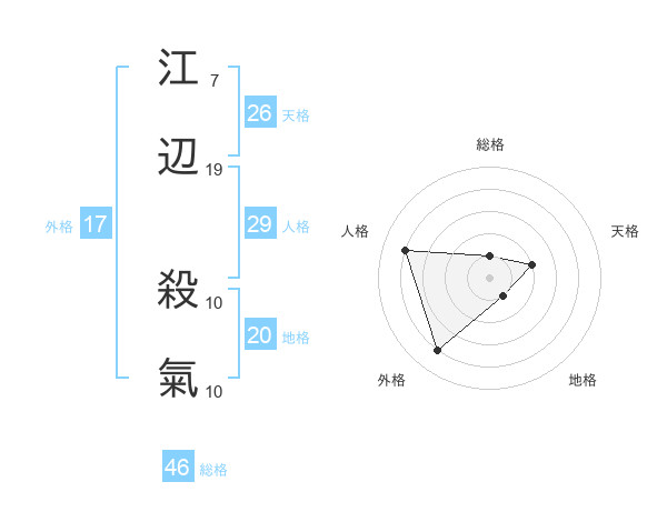 江辺 殺氣さんの外格は17画の4点!