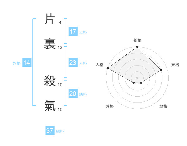片裏 殺氣さんを姓名の画数から五運を鑑定