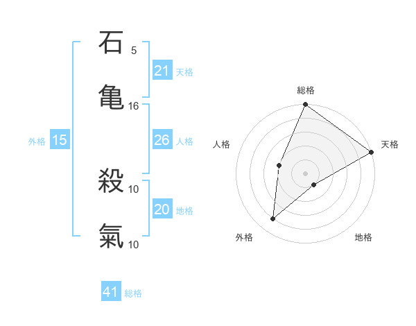 石亀 殺氣さんを姓名の画数から五運を鑑定