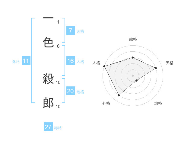 一色 殺郎さんの地格は20画の1点!