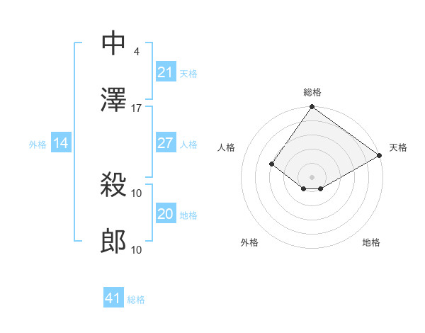 中澤 殺郎さんを姓名の画数から五運を鑑定