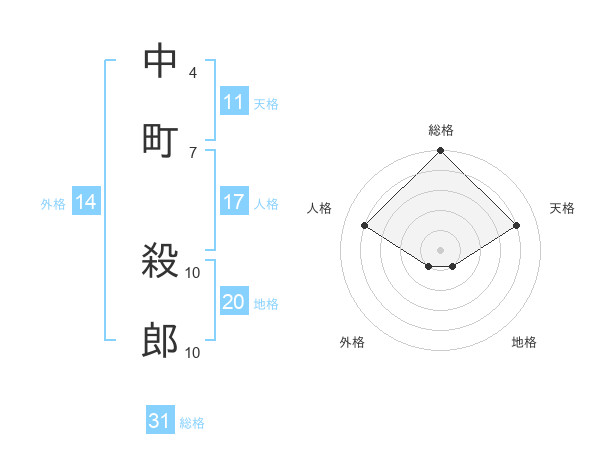 中町 殺郎さんを姓名の画数から五運を鑑定