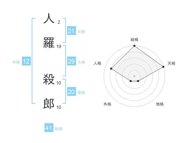 人羅 殺郎さんの総格は41画の5点!