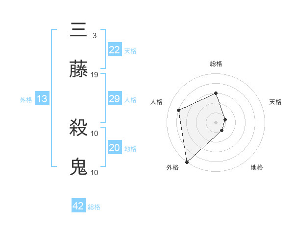 三藤 殺鬼さんの総格は42画の3点!