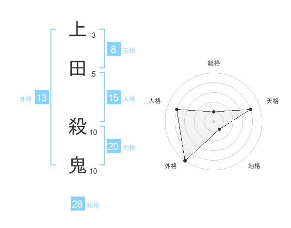 上田 殺鬼さんの天格は8画の4点!