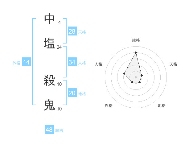 中塩 殺鬼さんの総格は48画の4点!