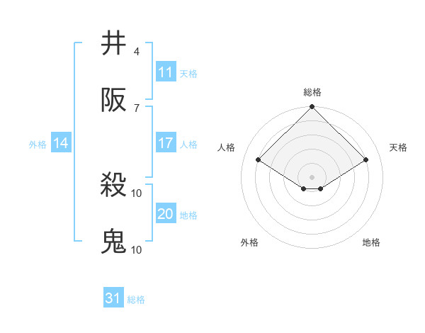 井阪 殺鬼さんを姓名の画数から五運を鑑定