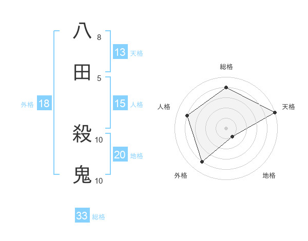 八田 殺鬼さんを姓名の画数から五運を鑑定