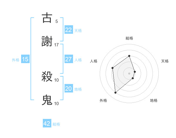 古謝 殺鬼さんを姓名の画数から五運を鑑定