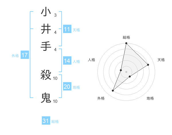 小井手 殺鬼さんを姓名の画数から五運を鑑定