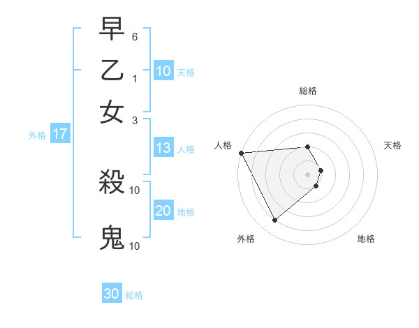 早乙女 殺鬼さんを姓名の画数から五運を鑑定