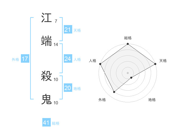 江端 殺鬼さんの外格は17画の4点!