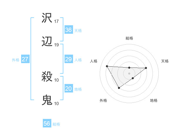 沢辺 殺鬼さんの天格は36画の3点!