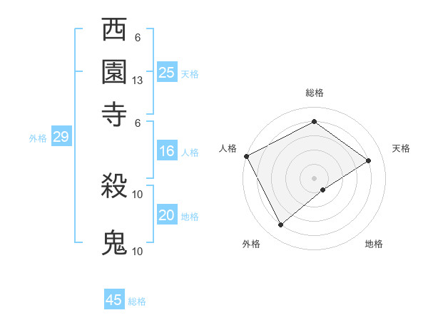 西園寺 殺鬼さんを姓名の画数から五運を鑑定