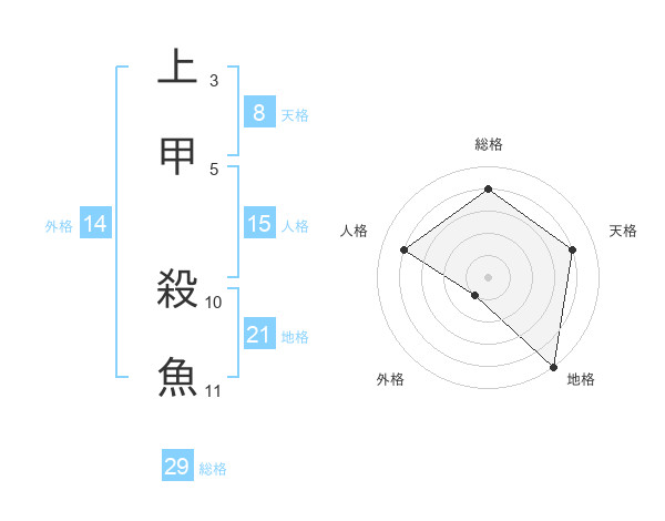 上甲 殺魚さんを姓名の画数から五運を鑑定