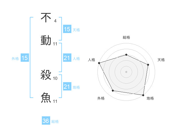 不動 殺魚さんを姓名の画数から五運を鑑定
