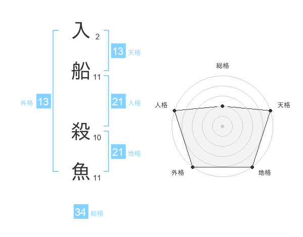 入船 殺魚さんの総格は34画の2点!