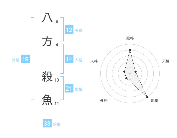 八方 殺魚さんの総格は33画の4点!