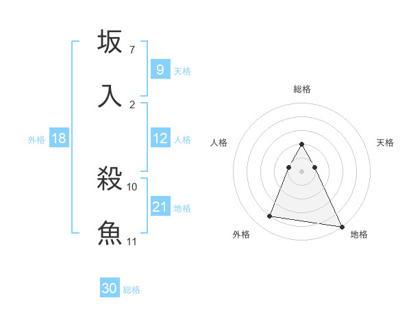坂入 殺魚さんの総格は30画の2点!