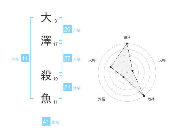 大澤 殺魚さんの総格は41画の5点!