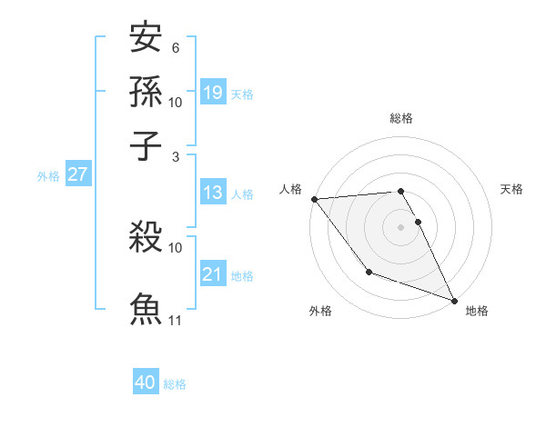 安孫子 殺魚さんを姓名の画数から五運を鑑定