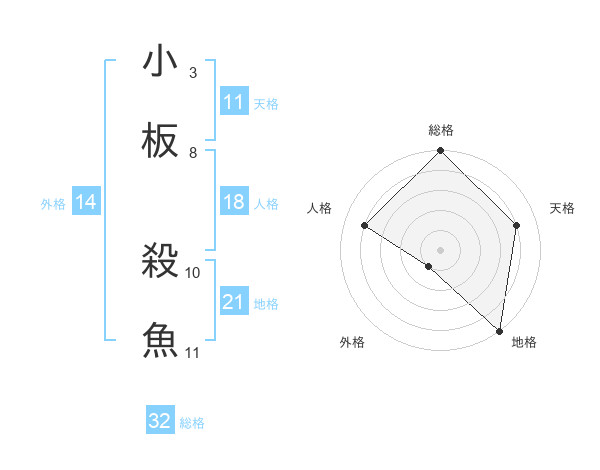 小板 殺魚さんを姓名の画数から五運を鑑定