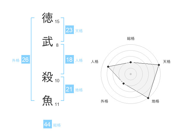 徳武 殺魚さんの総格は44画の2点!