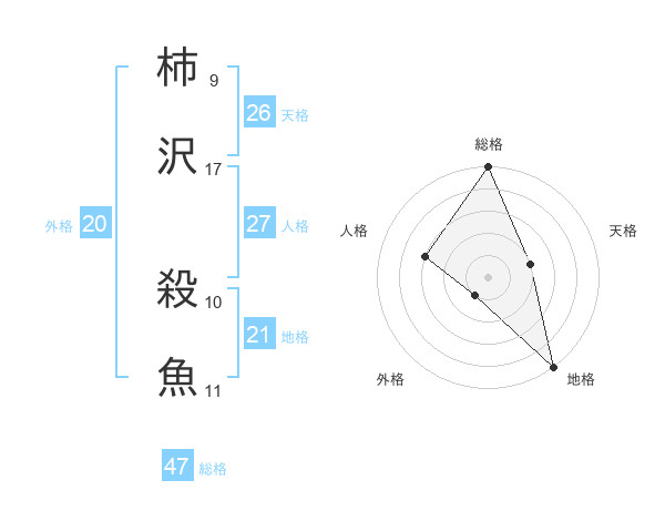 柿沢 殺魚さんの総格は47画の5点!
