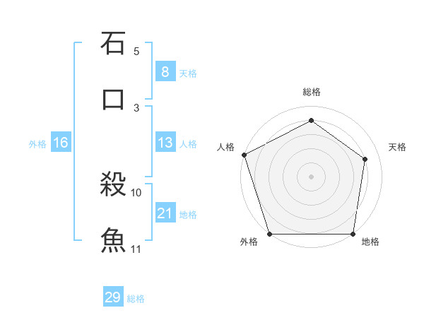 石口 殺魚さんの総格は29画の4点!