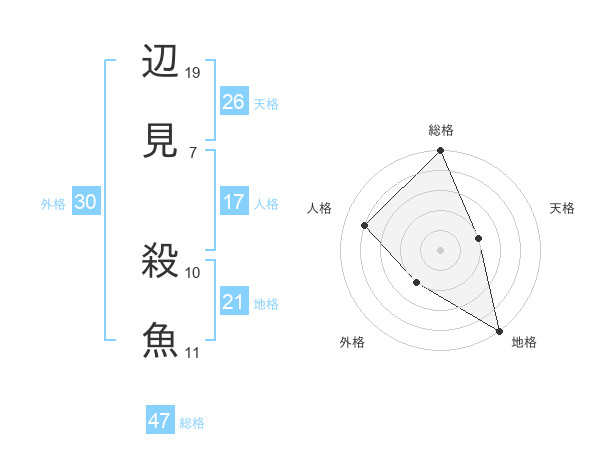 辺見 殺魚さんの総格は47画の5点!