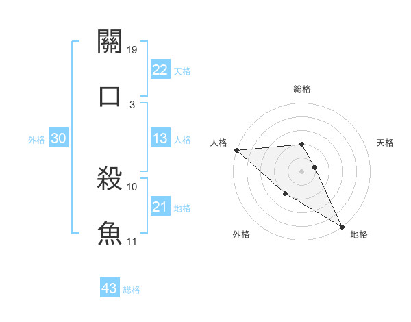 關口 殺魚さんの総格は43画の2点!