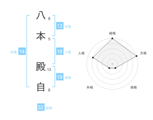 八本 殿自さんの総格は32画の5点!