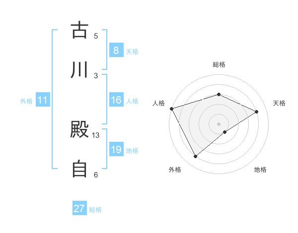 家系が持つ宿命的な運勢を表します。祖先から受け継いだ苗字ですので自分の力が及びません。家柄を象徴します。