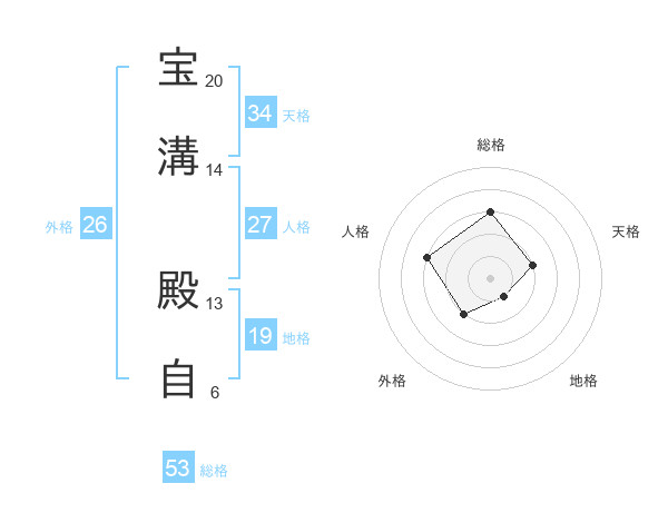宝溝 殿自さんの総格は53画の3点!
