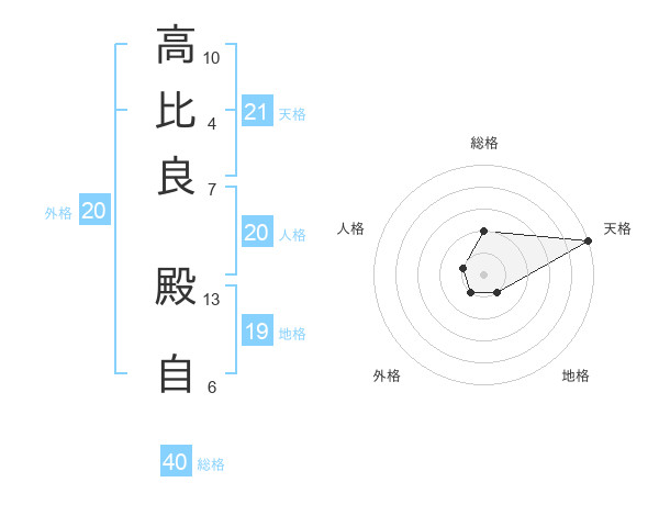 高比良 殿自さんを姓名の画数から五運を鑑定