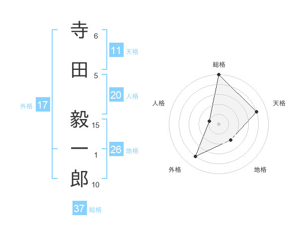 寺田 毅一郎さんの総格は37画の5点!