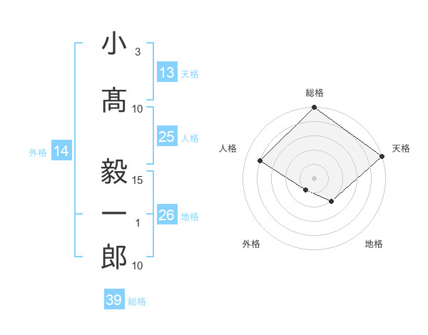 小髙 毅一郎さんの総格は39画の5点!