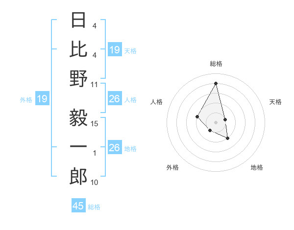 日比野 毅一郎さんを姓名の画数から五運を鑑定